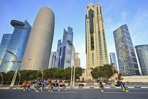 (250117) -- DOHA, 17 enero, 2025 (Xinhua) -- Participantes corren durante el Maratón de Doha 2025, en Doha, Qatar, el 17 de enero de 2025. (Xinhua/Nikku) (rtg) (ra) (ce)
