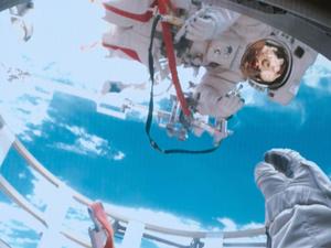 (241218) -- BEIJING, Dec. 18, 2024 (Xinhua) -- This screen image captured at Beijing Aerospace Control Center on Dec. 17, 2024 shows Shenzhou-19 astronaut Cai Xuzhe (above) and Song Lingdong (below) working outside and inside the airlock cabin of China's orbiting space station. Shenzhou-19 crew members aboard China's orbiting space station completed the first extravehicular activities (EVAs) of their mission at 9:57 p.m. (Beijing Time) on Tuesday, according to the China Manned Space Agency (CMSA). (Xinhua/Li Jie)