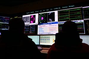 (250120) — HEFEI, 20 enero, 2025 (Xinhua) — Miembros del equipo de la División de Física y Operaciones Experimentales del Tokamak Superconductor Avanzado Experimental (EAST, siglas en inglés), observan datos durante un experimento, en Hefei, en la provincia de Anhui, en el este de China, el 20 de enero de 2025. El EAST, apodado como “sol artificial” de China, mantuvo el lunes una operación de plasma de alto confinamiento en estado estacionario durante notables 1.066 segundos, estableciendo un nuevo récord mundial y marcando un gran avance en la búsqueda de la generación de energía de fusión. La duración de 1.000 segundos es considerada un paso clave en la investigación de la fusión. El avance, logrado por el Instituto de Física de Plasma de la Academia de Ciencias de China, mejoró en gran medida el anterior récord mundial de 403 segundos, que también había sido establecido por el EAST en 2023. (Xinhua/Zhou Mu) (rtg) (ah) (ce)
