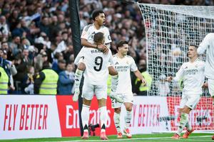 (250120) -- MADRID, 20 enero, 2025 (Xinhua) -- Imagen del 19 de enero de 2025 de jugadores de Real Madrid festejando una anotación durante el partido de fútbol de LaLiga entre Real Madrid y UD Las Palmas, en el estadio Santiago Bernabéu, en Madrid, España. (Xinhua/Gustavo Valiente) (oa) (ah) (vf)