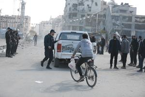 (250120) — GAZA, 20 enero, 2025 (Xinhua) — Miembros de la policía palestina de Hamás montan guardia en una calle, en la Ciudad de Gaza, el 20 de enero de 2025. El Ministerio del Interior de Gaza, dirigido por Hamás, dijo el sábado en un comunicado que sus fuerzas de seguridad comenzarán a desplegarse por toda la Franja de Gaza en cuanto entre en vigor el domingo el acuerdo de alto el fuego a cambio de la liberación de rehenes. (Xinhua/Abdul Rahman Salama) (oa) (ah) (vf)