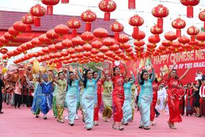 (250126) -- YANGÓN, 26 enero, 2025 (Xinhua) -- Imagen del 25 de enero de 2025 de bailarines realizando una presentación durante una celebración del Año Nuevo chino, en Yangón, Myanmar. Una celebración por el Año Nuevo chino se llevó a cabo el sábado en el Estadio Thuwunna. (Xinhua/Myo Kyaw Soe) (rtg) (da)