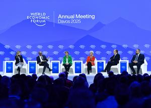 (250124) -- DAVOS, 24 enero, 2025 (Xinhua) -- El presidente de Singapur, Tharman Shanmugaratnam (2-i), la directora gerente del Fondo Monetario Internacional, Kristalina Georgieva (3-i), y Christine Lagarde (3-d), presidenta del Banco Central Europeo, asisten a la reunión anual del Foro Económico Mundial (FEM), en Davos, Suiza, el 24 de enero de 2025. El FEM concluyó su reunión anual 2025 aquí el viernes. (Xinhua/Lian Yi) (rtg) (ra) (vf)