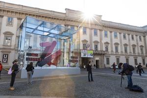 (250206) -- MILAN, 6 febrero, 2025 (Xinhua) -- Reporteros trabajan frente al tablero de cuenta regresiva para los Juegos Olímpicos y Paralímpicos de Invierno de Milán-Cortina d'Ampezzo, cerca del Duomo de Milán, en Milán, Italia, el 6 de febrero de 2025. (Xinhua/Li Jing) (jg) (ah) (vf)