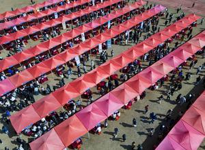 (250208) -- BEIJING, 8 febrero, 2025 (Xinhua) -- Vista aérea tomada con un dron el 8 de febrero de 2025 de solicitantes de trabajo participando en una feria de empleo, en la ciudad de Zhangzhou, en la provincia de Fujian, en el sureste de China. Una variedad de ferias de empleo se llevan a cabo en todo el país después de las vacaciones. (Xinhua/Zhang Xu) (oa) (da)