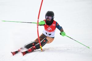 (250208) -- YABULI, 8 febrero, 2025 (Xinhua) -- Ding Jie, de China, compite durante el eslalon gigante femenino del evento de esquí alpino en los IX Juegos Asiáticos de Invierno, en Yabuli, en la provincia de Heilongjiang, en el noreste de China, el 8 de febrero de 2025. (Xinhua/Chen Yichen) (jg) (da)