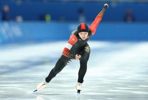 (250208) — HARBIN, 8 febrero, 2025 (Xinhua) — Wang Jingziqian, de China, compite durante la final de 100m femeninos del evento de patinaje de velocidad en los IX Juegos Asiáticos de Invierno, en Harbin, en la provincia de Heilongjiang, en el noreste de China, el 8 de febrero de 2025. (Xinhua/Wang Kaiyan) (oa) (da)
