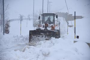 (250208) -- BSHARRI, 8 febrero, 2025 (Xinhua) -- Imagen del 7 de febrero de 2025 de un vehículo limpiando la nieve, en Bisharri, Líbano. (Xinhua/Khaled Habashiti) (oa) (da)