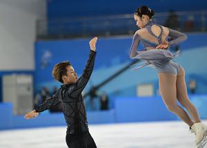 (250212) -- HARBIN, 12 febrero, 2025 (Xinhua) -- Nagaoka Yuna (d)/Moriguchi Sumitada, de Japón, compiten durante el patinaje estilo libre por parejas del evento de patinaje artístico en los IX Juegos Asiáticos de Invierno, en Harbin, en la provincia de Heilongjiang, en el noreste de China, el 12 de febrero de 2025. (Xinhua/Yan Linyun) (ah) (ra) (vf)