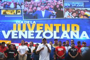 (250212) -- CARACAS, 12 febrero, 2025 (Xinhua) -- El presidente de la Asamblea Nacional venezolana, Jorge Rodríguez (frente), habla durante un acto en el marco del Día de la Juventud, en Caracas, Venezuela, el 12 de febrero de 2025. Jóvenes venezolanos marcharon el miércoles por las calles de Caracas para celebrar el Día de la Juventud y plantearon a la Asamblea Nacional (Parlamento) la necesidad de elaborar leyes que garanticen sus derechos. (Xinhua/Marcos Salgado) (ms) (ah) (ra) (vf)
