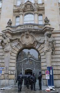 (250216) -- MUNICH, 16 febrero, 2025 (Xinhua) -- Policías vigilan cerca del hotel en el que se lleva a cabo la 61ª Conferencia de Seguridad de Múnich, en Múnich, Alemania, el 16 de febrero de 2025. La Conferencia de Seguridad de Múnich, de tres días de duración concluyó aquí el domingo. (Xinhua/Zhang Fan) (rtg) (da)