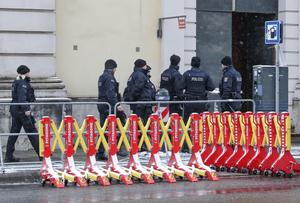 (250216) -- MUNICH, 16 febrero, 2025 (Xinhua) -- Policías vigilan cerca del hotel en el que se lleva a cabo la 61ª Conferencia de Seguridad de Múnich, en Múnich, Alemania, el 16 de febrero de 2025. La Conferencia de Seguridad de Múnich, de tres días de duración concluyó aquí el domingo. (Xinhua/Zhang Fan) (rtg) (oa)