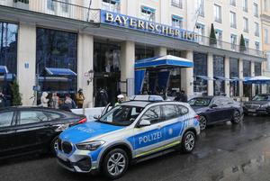 (250216) -- MUNICH, 16 febrero, 2025 (Xinhua) -- Imagen del 16 de febrero de 2025 de un vehículo policial en la entrada del hotel en el que se lleva a cabo la 61ª Conferencia de Seguridad de Múnich, en Múnich, Alemania. La Conferencia de Seguridad de Múnich, de tres días de duración concluyó aquí el domingo. (Xinhua/Zhang Fan) (rtg) (da)
