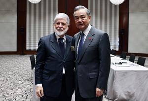 (250216) -- MUNICH, 16 febrero, 2025 (Xinhua) -- El ministro de Relaciones Exteriores chino, Wang Yi, también miembro del Buró Político del Comité Central del Partido Comunista de China, se reúne con Celso Amorim, asesor especial del presidente de Brasil, al margen de la Conferencia de Seguridad de Múnich, en Múnich, Alemania, el 15 de febrero de 2025.(Xinhua/Gao Jing) (rtg) (ah)