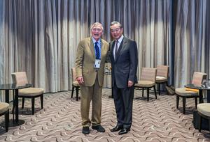 (250215) -- MÚNICH, 15 febrero, 2025 (Xinhua) -- El ministro de Relaciones Exteriores chino, Wang Yi, también miembro del Buró Político del Comité Central del Partido Comunista de China, se reúne con Graham Allison, profesor de la Universidad de Harvard, al margen de la Conferencia de Seguridad de Múnich, en Múnich, Alemania, el 14 de febrero de 2025. (Xinhua/Zhang Fan) (jg) (da)