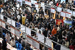 (250215) -- YINCHUAN, 15 febrero, 2025 (Xinhua) -- Solicitantes de trabajo asisten a una feria de empleo celebrada en Yinchuan, en la región autónoma hui de Ningxia, en el noroeste de China, el 15 de febrero de 2025. La feria de empleo comenzó aquí el sábado. Más de 200 empresas de diversas industrias, como las nuevas energías, la biotecnología y el comercio electrónico, ofrecen más de 4.000 vacantes a los solicitantes de trabajo. (Xinhua/Feng Kaihua) (oa) (da)
