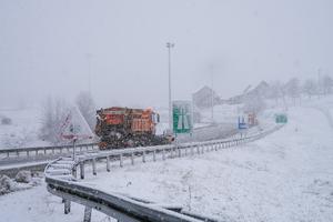 (250214) -- ZAGREB, 14 febrero, 2025 (Xinhua) -- Vehículos circulan en una carretera bajo la nieve, en Zagreb, Croacia, el 14 de febrero de 2025. (Xinhua/Hrvoje Kostelac/PIXSELL) (rtg) (ra) (vf)