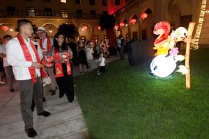 (250215) -- LA HABANA, 15 febrero, 2025 (Xinhua) -- Imagen del 13 de febrero de 2025 del embajador chino en Cuba, Hua Xin, (i), observando una figura de los animales del calendario chino exhibidas en una exposición de lámparas utilizadas en el Festival de las Linternas durante la XV Bienal de La Habana en los jardines del Hotel Nacional de Cuba, en La Habana, capital de Cuba. La cultura tradicional china hizo acto de presencia en la XV Bienal de La Habana con la inauguración de una muestra de lámparas utilizadas en el Festival de las Linternas. (Xinhua/Joaquín Hernández) (jh) (jg) (da)