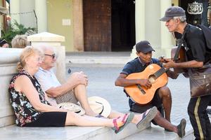 (250214) — LA HABANA, 14 febrero, 2025 (Xinhua) — Músicos callejeros interpretan una canción a una pareja de adultos mayores en el marco del Día de los Enamorados, en La Habana, capital de Cuba, el 14 de febrero de 2025. (Xinhua/Joaquín Hernández) (jh) (rtg) (ra) (vf)