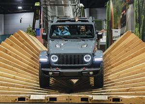 (250215) -- CHICAGO, 15 febrero, 2025 (Xinhua) -- Imagen del 14 de febrero de 2025 de personas probando un Jeep Gladiator 2025 en la pista de pruebas del Camp Jeep en el Salón del Automóvil de Chicago 2025 en el McCormick Place, en Chicago, Estados Unidos. El salón del automóvil se realiza del 8 al 17 de febrero. (Xinhua/Joel Lerner) (jg) (da)
