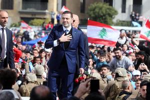 (250215) -- BEIRUT, 15 febrero, 2025 (Xinhua) -- Imagen del 14 de febrero de 2025 del exprimer ministro libanés, Saad Hariri, asistiendo a un mitin en conmemoración del 20 aniversario del asesinato de su padre Rafik Hariri, un destacado líder suní y exprimer ministro libanés, en Beirut, Líbano. El exprimer ministro libanés, Saad Hariri, declaró el viernes que reviviría su partido Movimiento Futuro y volvería a participar en las elecciones, revirtiendo una decisión de 2022 de abandonar la política, durante un mitin para conmemorar los 20 años del asesinato de su padre Rafik Hariri. (Xinhua/Bilal Jawich) (oa) (da)