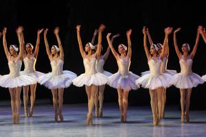 (250215) -- CIUDAD DE MÉXICO, 15 febrero, 2025 (Xinhua) -- Imagen del 14 de febrero de 2025 de bailarinas de la Compañía Nacional de Danza de México realizando una presentación de "El Lago de los Cisnes" en la Sala Principal del Palacio de Bellas Artes, en la Ciudad de México, capital de México. (Xinhua/Francisco Cañedo) (fc) (oa) (da)