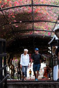 (250215) -- CIUDAD DE PANAMA, 15 febrero, 2025 (Xinhua) -- Imagen del 14 de febrero de 2025 de una pareja de adultos mayores vista en el Día de San Valentín, en el Casco Antiguo de la Ciudad de Panamá, en Panamá. (Xinhua/Xu Yongzheng) (oa) (da)