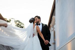 (250215) -- CIUDAD DE PANAMA, 15 febrero, 2025 (Xinhua) -- Imagen del 14 de febrero de 2025 de una pareja posando para fotografías de boda en el Día de San Valentín en una iglesia, en el Casco Antiguo de la Ciudad de Panamá, en Panamá. (Xinhua/Xu Yongzheng) (oa) (da)