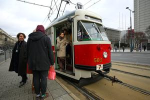 (250216) -- VARSOVIA, 16 febrero, 2025 (Xinhua) -- Imagen del 15 de febrero de 2025 de personas descendiendo de un tranvía de San Valentín, en Varsovia, Polonia. El tranvía de 66 años operó del 14 al 16 de febrero en la ciudad, atrayendo a pasajeros para disfrutar el viaje romántico. (Xinhua/Jaap Arriens) (rtg) (ah)