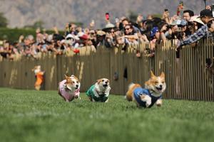 (250217) -- ARCADIA, 17 febrero, 2025 (Xinhua) -- Imagen del 16 de febrero de 2025 de perros Corgi corriendo durante el Campeonato Nacional de Invierno de Corgis, en Santa Anita Park en Arcadia, California, Estados Unidos. El evento atrajo a cientos de Corgis que compitieron por el título del Corgi más rápido. (Xinhua/Qiu Chen) (oa) (rtg) (vf)