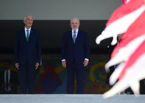 (250218) -- BRASILIA, 18 febrero, 2025 (Xinhua) -- El presidente brasileño, Luiz Inácio Lula da Silva (d), recibe a su homólogo de Portugal, Marcelo Rebelo de Sousa, durante una ceremonia de bienvenida en el Palacio de Planalto, en Brasilia, Brasil, el 18 de febrero de 2025. Lula da Silva recibió el martes a Rebelo de Sousa, quien realiza una visita de Estado en Brasilia para reforzar los lazos bilaterales. (Xinhua/Lucio Tavora) (lt) (jg) (ra) (vf)