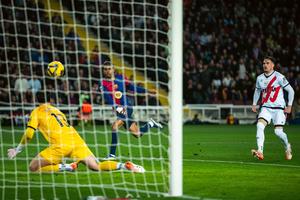 (250218) -- BARCELONA, 18 febrero, 2025 (Xinhua) -- Imagen del 17 de febrero de 2025 de Lamine Yamal (c), de Barcelona, realizando una anotación durante el partido de fútbol de LaLiga entre FC Barcelona y Rayo Vallecano, en Barcelona, España. (Xinhua/Joan Gosa) (oa) (ah) (ce)