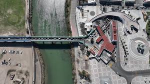 (250218) -- COAHUILA, 18 febrero, 2025 (Xinhua) -- Vista aérea tomada con un dron el 16 de febrero de 2025 de vehículos pasando por un puente internacional entre México (d) y Estados Unidos, en Piedras Negras, Coahuila, México. México y Estados Unidos comparten una línea fronteriza de más de 3.100 kilómetros, con la sección oriental definida principalmente por el Río Bravo. (Xinhua/Li Mengxin) (oa) (ah) (ce)