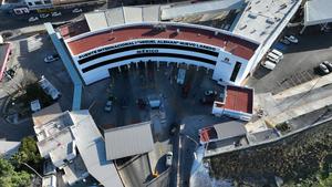 (250218) -- TAMAULIPAS, 18 febrero, 2025 (Xinhua) -- Vista aérea tomada con un dron el 16 de febrero de 2025 de un puesto de control, en Nuevo Laredo, Tamaulipas, México. México y Estados Unidos comparten una línea fronteriza de más de 3.100 kilómetros, con la sección oriental definida principalmente por el Río Bravo. (Xinhua/Li Mengxin) (oa) (ah) (ce)