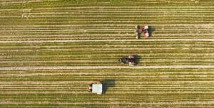 (250219) -- SHENXIAN, 19 febrero, 2025 (Xinhua) -- Vista aérea tomada con un dron el 19 de febrero de 2025 de agricultores operando máquinas agrícolas en un campo, en el distrito de Shenxian, en la provincia de Shandong, en el este de China. Las actividades agrícolas están en pleno apogeo en toda China a principios de la primavera. (Xinhua/Fan Changguo) (jg) (da) (vf)