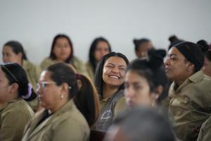 (250219) -- BOGOTA, 19 febrero, 2025 (Xinhua) -- Imagen del 18 de febrero de 2025 de reclusas asistiendo al evento "Bienvenidas a la Libertad", en la cárcel de mujeres El Buen Pastor, en Bogotá, Colombia. La Ministra de Justicia de Colombia, Angela María Buitrago, lideró el martes en la cárcel de mujeres "El Buen Pastor", en Bogotá, el evento "Bienvenidas a la Libertad", una feria de servicios articulada con el sector empresarial que pretende generar oportunidades de resocialización a quienes pronto recuperarán su libertad (Xinhua/Andrés Moreno) (am) (oa) (ah) (ra) (ce)