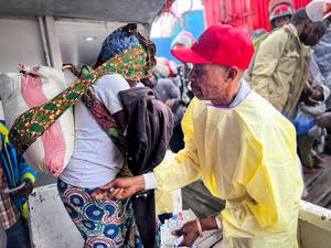 (250219) -- GOMA, 19 febrero, 2025 (Xinhua) -- Imagen del 18 de febrero de 2025 de un hombre realizando los trámites de salida de los pasajeros que descienden de un ferry en un muelle, en Goma, República Democrática del Congo (RDC). El tráfico en el lago Kivu entre Bukavu y Goma, dos capitales de provincia en el este de la RDC, se reanudó el martes después de semanas de suspensión debido a los enfrentamientos en Goma. (Xinhua/Zanem Nety Zaidi) (ah) (ra) (ce)