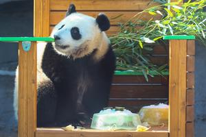 (250219) -- MOSCU, 19 febrero, 2025 (Xinhua) -- Imagen del 18 de febrero de 2025 de la panda gigante Katyusha jugando en una silla en el Zoológico de Moscú, en Moscú, Rusia. Katyusha, la primera cría de panda gigante de Rusia nacida en el Zoológico de Moscú, recibió una silla y un caballo de madera como nuevos regalos. El padre y la madre de Katyusha son Ru Yi y Ding Ding, quienes fueron enviados a Rusia en 2019 en conmemoración del 70 aniversario del establecimiento de relaciones diplomáticas entre China y Rusia. (Xinhua/Bai Xueqi) (jg) (da) (ce)