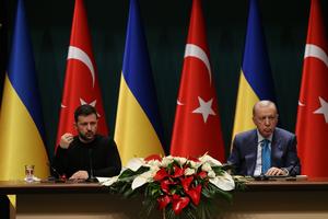 (250219) -- ANKARA, 19 febrero, 2025 (Xinhua) -- Imagen del 18 de febrero de 2025 del presidente turco, Recep Tayyip Erdogan (d), y el presidente ucraniano, Volodymyr Zelensky, sosteniendo una conferencia de prensa conjunta en el Complejo Presidencial, en Ankara, Turquía. Zelensky llegó a Ankara el lunes para reunirse con el presidente turco, Recep Tayyip Erdogan, informó la emisora estatal TRT. (Xinhua/Mustafa Kaya) (ah) (ra) (vf)