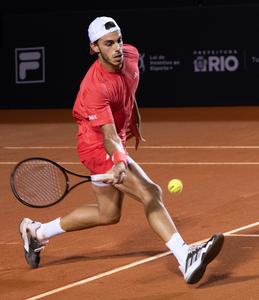 (250221) -- RIO DE JANEIRO, 21 febrero, 2025 (Xinhua) -- Imagen del 20 de febrero de 2025 de Francisco Cerundolo, de Argentina, devolviendo la pelota durante el partido de octavos de final de individuales masculinos ante Luciano Darderi, de Italia, en el Río Open de la ATP 500 2025, en el Jockey Club Brasileiro, en Río de Janeiro, Brasil. (Xinhua/Wang Tiancong) (rtg) (ra) (vf)