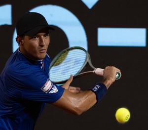 (250221) -- RIO DE JANEIRO, 21 febrero, 2025 (Xinhua) -- Imagen del 20 de febrero de 2025 de Luciano Darderi, de Italia, devolviendo la pelota durante el partido de octavos de final de individuales masculinos ante Francisco Cerundolo, de Argentina, en el Río Open de la ATP 500 2025, en el Jockey Club Brasileiro, en Río de Janeiro, Brasil. (Xinhua/Wang Tiancong) (rtg) (ra) (vf)