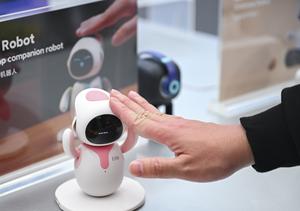 (250221) -- SHANGHAI, 21 febrero, 2025 (Xinhua) -- Un visitante interactúa con un robot de compañía en la Conferencia Mundial de Desarrolladores 2025 llevada a cabo en Shanghai, en el este de China, el 21 de febrero de 2025. La Conferencia Mundial de Desarrolladores 2025, que tendrá lugar del 21 al 23 de febrero en Shanghai, se centra en tecnologías de vanguardia, incluidos modelos de gran tamaño, potencia informática y plataformas de software. (Xinhua/Chen Haoming) (rtg) (ra) (vf)