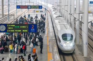 (250222) -- BEIJING, 22 febrero, 2025 (Xinhua) -- Pasajeros esperan para abordar un tren en la Estación del Ferrocarril Longmen de Luoyang, en Luoyang, en la provincia de Henan, en el centro de China, el 22 de febrero de 2025. El número total de viajes interregionales de pasajeros en China durante los 40 días de la temporada alta de viajes por la Fiesta de la Primavera, también conocida como chunyun, se estima en 9.030 millones, según datos oficiales. La temporada alta de viajes concluyó el sábado. (Xinhua/Zhang Yixi) (jg) (da)