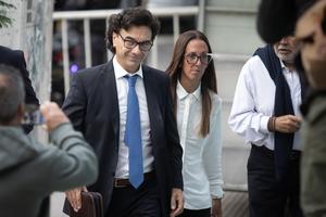 (250311) -- BUENOS AIRES, 11 marzo, 2025 (Xinhua) -- La psiquiatra Agustina Cosachov (2-d), y su abogado Vadim Mischanchuk (i), ingresan a los Tribunales de San Isidro durante el inicio del juicio por la muerte del exastro argentino del fútbol, Diego Armando Maradona, en la ciudad de Buenos Aires, capital de Argentina, el 11 de marzo de 2025. (Xinhua/Martín Zabala) (mz) (ah) (ra) (vf)