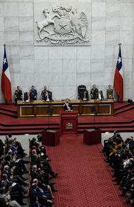 (250312) -- VALPARAISO, 12 marzo, 2025 (Xinhua) -- Imagen del 1 de junio de 2023 del presidente chileno, Gabriel Boric (c-abajo), pronunciando un discurso en la entrega de su Cuenta Pública Presidencial en el Congreso Nacional, en Valparaíso, Chile. Boric cumplió el martes tres años desde que asumió el Gobierno, con aciertos en materia laboral al promulgar una reforma al sistema de pensiones y el aumento al salario mínimo, pero golpeado por escándalos en su gabinete y partidos afines, además de la atomización de las promesas refundacionales, según la consideración de expertos. (Xinhua/Jorge Villegas) (jv) (ah) (ra) (vf)