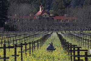 (250312) -- VALLE DE NAPA, 12 marzo, 2025 (Xinhua) -- Imagen del 11 de marzo de 2025 de un hombre trabajando en un viñedo, en el Valle de Napa de California, Estados Unidos. (Xinhua/Liu Yilin) (jg) (da) (ce)
