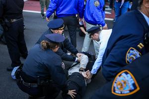(250312) -- NUEVA YORK, 12 marzo, 2025 (Xinhua) -- Imagen del 11 de marzo de 2025 de oficiales del Departamento de Policía de Nueva York (NYPD, por sus siglas en inglés) arrestando a un manifestante durante una protesta contra las políticas de la administración de Donald Trump en Medio Oriente, las protestas en los campus universitarios y la inmigración, en la Ciudad de Nueva York, Estados Unidos. Cientos de manifestantes propalestina organizaron el martes una manifestación y marcha en la Ciudad de Nueva York en protesta por las políticas de la administración de Donald Trump en Medio Oriente, las protestas en los campus universitarios y la inmigración. Manifestantes salieron a las calles y marcharon desde Washington Park hasta el Ayuntamiento en el Bajo Manhattan por la tarde, y una docena de ellos fueron detenidos por la policía. (Xinhua/Michael Nagle) (ah) (ra) (vf)