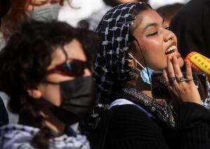 (250312) -- NUEVA YORK, 12 marzo, 2025 (Xinhua) -- Imagen del 11 de marzo de 2025 de personas manifestándose durante una protesta contra las políticas de la administración de Donald Trump en Medio Oriente, las protestas en los campus universitarios y la inmigración, en la Ciudad de Nueva York, Estados Unidos. Cientos de manifestantes propalestina organizaron el martes una manifestación y marcha en la Ciudad de Nueva York en protesta por las políticas de la administración de Donald Trump en Medio Oriente, las protestas en los campus universitarios y la inmigración. Manifestantes salieron a las calles y marcharon desde Washington Park hasta el Ayuntamiento en el Bajo Manhattan por la tarde, y una docena de ellos fueron detenidos por la policía. (Xinhua/Michael Nagle) (ah) (ra) (vf)