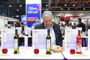 (250312) -- MADRID, 12 marzo, 2025 (Xinhua) -- Imagen del 11 de marzo de 2025 de un hombre visitando la Exposición Mundial del Aceite de Oliva 2025, en Madrid, España. La exposición fue inaugurada el martes, atrayendo a expositores de más de 40 países y regiones. (Xinhua/Gustavo Valiente) (jg) (da) (ce)