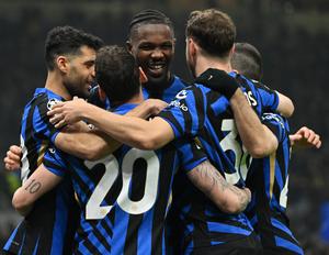 (250312) -- MILÁN, 12 marzo, 2025 (Xinhua) -- Imagen del 11 de marzo de 2025 de Hakan Calhanoglu (2-i), de Inter de Milán, festejando su anotación con sus compañeros durante el partido de vuelta de octavos de final de la Liga de Campeones de la UEFA entre Inter de Milán y Feyenoord, en Milán, Italia. (Xinhua/Alberto Lingria) (ah) (ra) (ce)